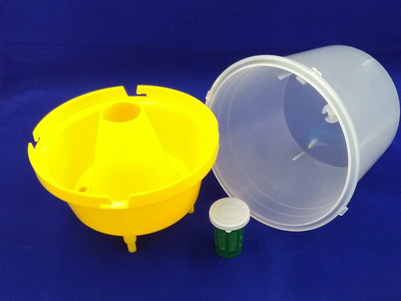 Tuzak, sert plastikten yapılmış sarı konik taban kısım, kubbe şeklinde şeffaf kova, feromon sepeti ve askı ipinden oluşur. Parçalar klipslerinden birleştirilerek kullanılır. Feromon sepeti şeffaf kovanın içine takılır. Böceklerin tuzağın içine girişi taban kısmındaki delikten gerçekleşir. Tuzağın içindeki sıvının içine düşerek orada kalırlar.